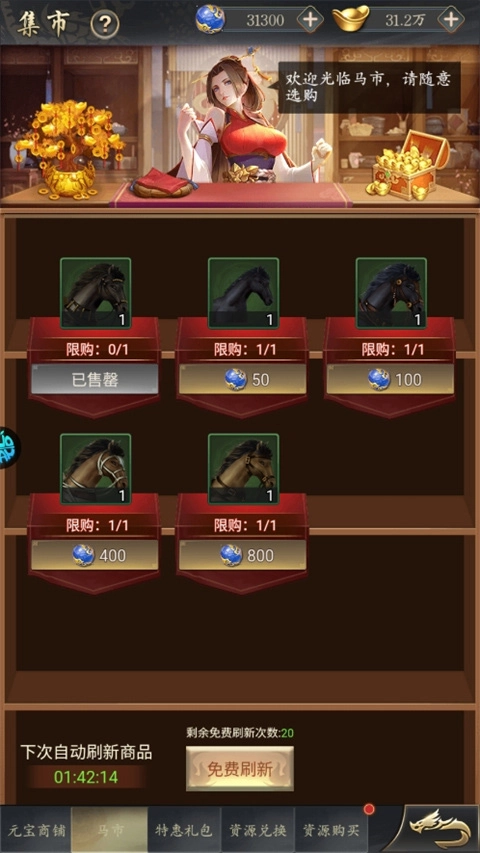 三国志名将传0.05折游戏怎么买马匹