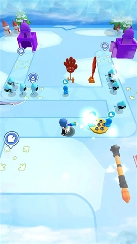 1. 该游戏采用塔防战斗机制,敌人将顺着既定路径向玩家基地发起进攻,玩家能够操控角色进行攻击。