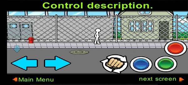 2、游戏界面左边是方向按钮,右边分别是转换武器、红色为跳跃、蓝色为攻击以及绿色为拳打脚踢;