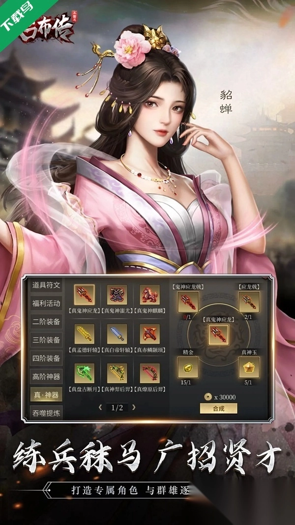 1、策略系统丰富多元:游戏深度融合三国历史背景,精心设计了火攻、水淹等多样化战术,以及方天画戟、赤兔马这类传奇宝物,不仅有效增强了策略玩法的深度,还充分彰显出浓郁的古典文化底蕴。