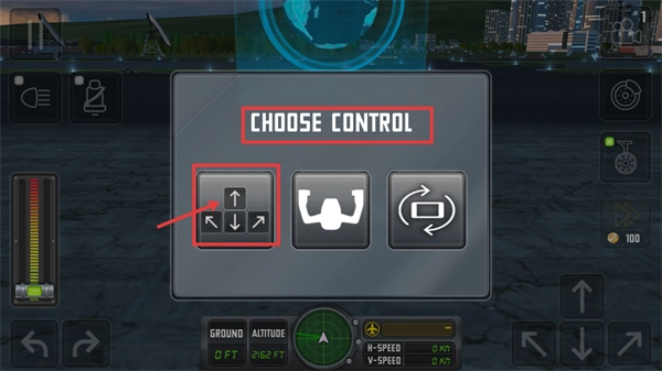 2、进入【CHOOSE-CONTROL】界面后,选择方向键样式的控制选项,这种操控方式能更精准地调整飞机的移动状态。