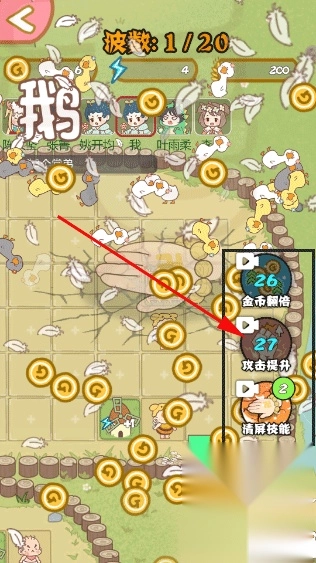 1、玩家得在自己的区域布置更多塔防设施,借助塔防的攻击效果击败鹅群,以此争取到粘人的时机;