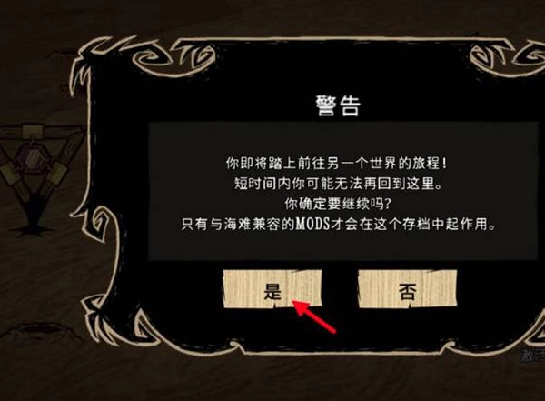 6、海洋之椅摆放好后,点击激活。此时系统会弹出“警告”提示,点击“是”就能切换到海难地图。需要注意的是,电脑配置较低可能会出现卡顿情况,并且不兼容两个DLC的模组将无法正常使用。