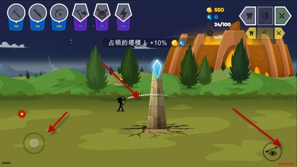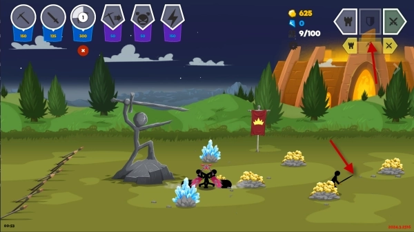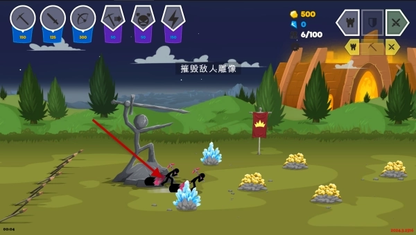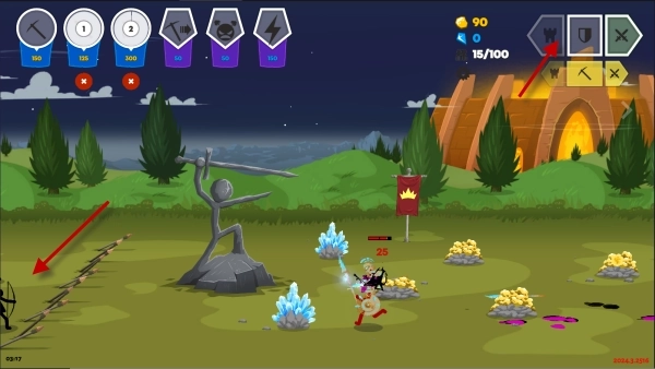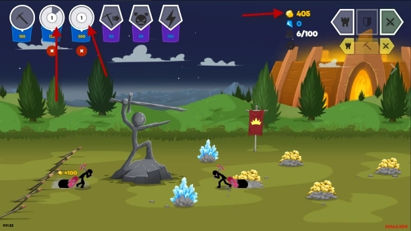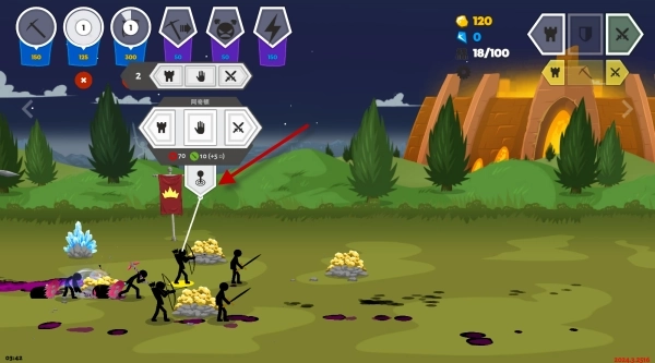 2、获得足够矿石后,可以召唤进攻型火柴人士兵。
