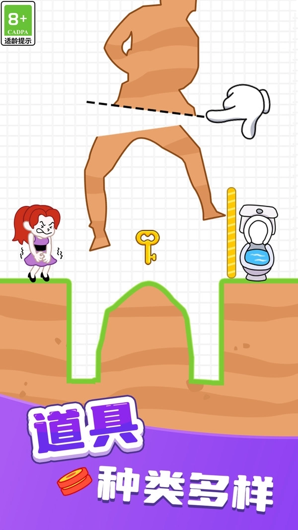 帮她生存是一款十分好玩的手机休闲游戏,玩家在游戏内需要切割物体来填充道路,来帮助游戏角色上厕所,游戏内有着很多的关卡,每一个关卡都有自己的特点,能够让玩家一直保持新鲜感,满足玩家的游玩需求。