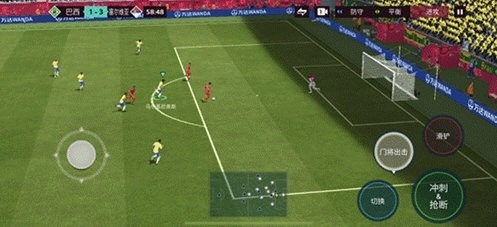 在比赛过程中,玩家能够借助手势来完成射门操作。具体而言,球员的射门动作会依据玩家划屏时的方向与力度做出相应的反应。当玩家朝着球门划出直线轨迹时,球员大概率会执行大力抽射;而要是划出的是弧线轨迹,球员则更可能选择搓射这种方式。