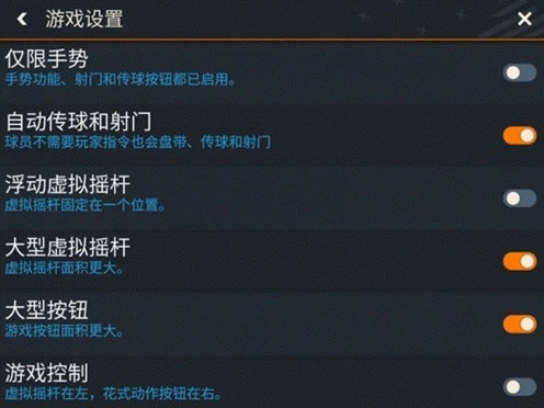 在设置界面,玩家能依据自身习惯决定是否开启自动传球与射门按钮。开启后,比赛中若玩家未操控球员,当球队由进攻转为防守时,系统会自动执行防守操作。另外,玩家也可根据个人习惯选择是否开启仅限手势按钮,开启该功能后,玩家在比赛里只能通过手势进行防守,无法使用按钮操作。