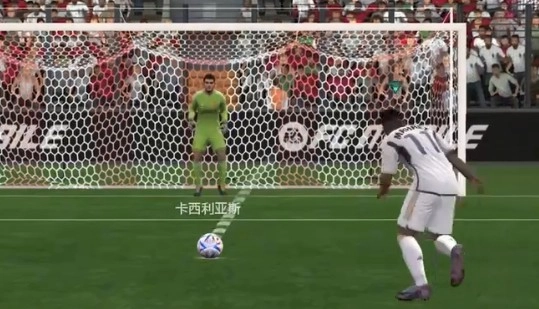当玩家向上滑动射门按钮时,球员就会完成挑射动作,这种射门方式最适合在禁区内面对守门员的单刀球场景。
