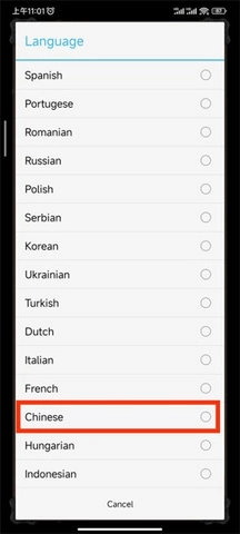 4、在“language”选项中选择“chinese”,就能切换成中文了。