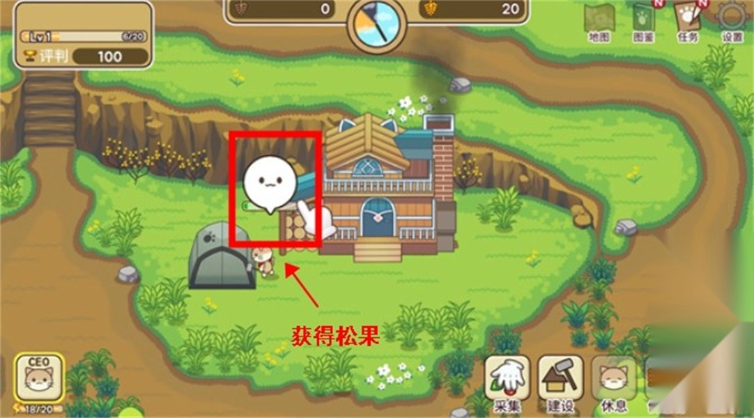 4、在你拿到帐篷之后,就会有猫咪来到帐篷里居住,它们还会给你对应的松果。