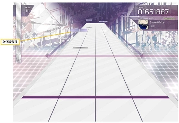 游戏包含上、下两个判定轨道。普通短音符应在下轨交汇点准确点击,而立体短音符则应匹配上方轨道时机点击。