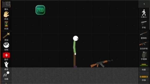 2、点击控制按钮,接着点击人物,再点击右下角黄色给的按钮,再点击人物,然后该角色就可以把枪捡起来了