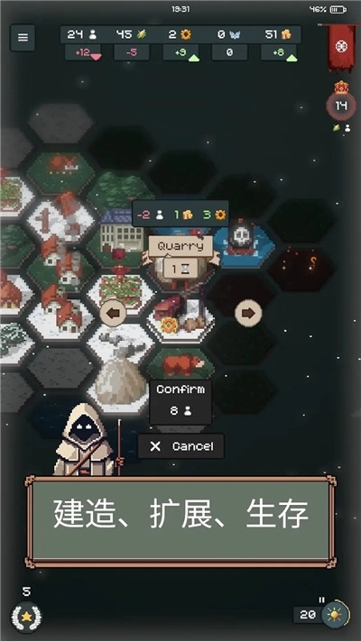 2、探索未知领域:组织探险队伍去驱散地图上的迷雾,找寻隐藏的宝藏位置、危险地带以及可供开发的资源。每一次探索行动都可能触发随机事件,或许能获取到稀有物资,也有可能会遭遇致命的危险。