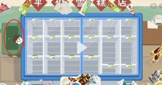 3、接下来把【雪糕】放到右上角的【扫描器】上扫出价格,再放进对应价格的【格子】里。这里有两个【4.5元的格子】,左上角那个是放【圆糕】的,【巧乐兹】则要放在第三排第三个格子。