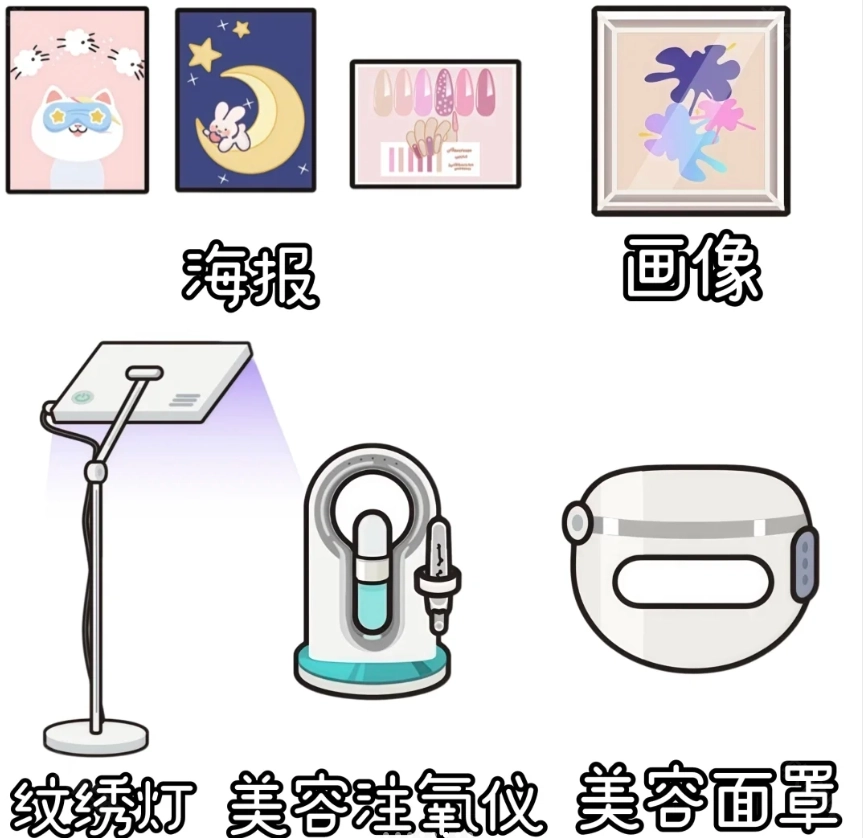 2、海报、画像、纹绣灯、美容注氧仪、美容面罩