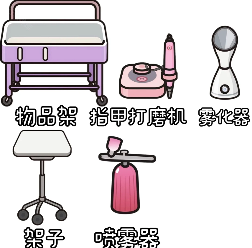 4、物品架、指甲打磨机、雾化器、架子、喷雾器