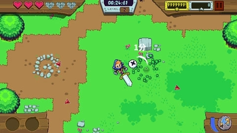眩晕骑士是一款休闲风格的角色扮演游戏,采用简洁的俯视角像素画面,带有红白机或GBA时代的复古韵味,心形的血量计量设计同样充满怀旧感。尽管画面略显粗糙,但鲜亮明快的色彩搭配既富有活力又避免了沉闷感,再加上活泼欢乐的音效与绚丽画面相互呼应,整体节奏十分明快。