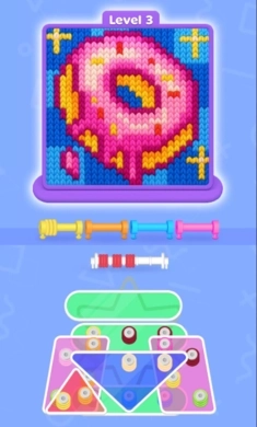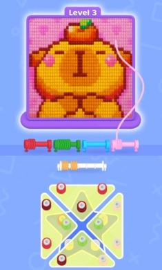 沉浸在一个满是柔软质感与创意挑战的缤纷天地里。你的任务是挑选恰当的线轴,把它们归类到对应的颜色条中。每当一个颜色条被填满,一幅精致的像素艺术画面便会逐渐显现出来。