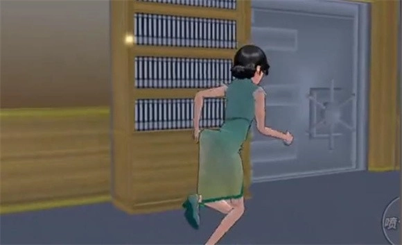 4、靠近后点击动作按钮会触发机关,书柜会移动露出保险柜。