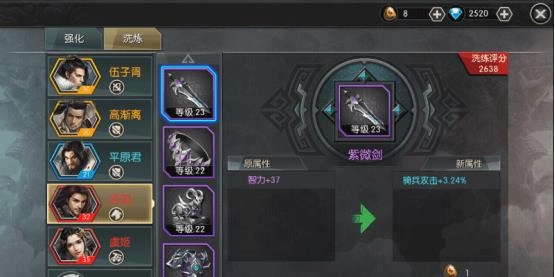 在挑选装备属性时,核心原则是优先选择对当前穿戴该装备的武将具备实际增益的属性。以楼主的项羽为例,他作为骑兵武将,初始装备却附加智力加成属性,这显然无法发挥其兵种优势,所以必须通过洗练将属性调整为更实用的类型,比如骑兵攻击加成。其他属性的洗练逻辑也是如此:第一步要锁定与当前武将兵种相匹配的属性类别,第二步再从该类别中筛选出最契合需求的具体属性,唯有遵循这一思路,才能打造出属性配置堪称极品的装备。
