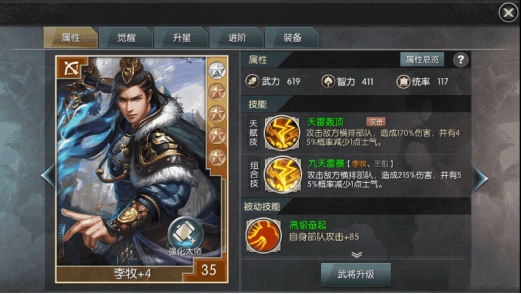 游戏里红将数量不少,最终选定项羽和虞姬这对武将,可不单单是前面提到的那些理由,更关键的一点在于他们的组合技!游戏里组合技的设定本就相当强力,而这两位更是当前红将里最容易凑齐的组合——他们的组合技能攻击全体部队,还有概率让被攻击的目标眩晕一回合,就问你这效果够不够震撼!