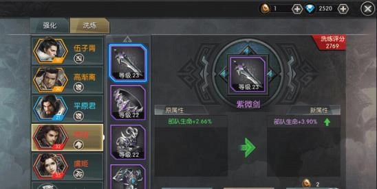 解锁完属性后,新的问题也随之而来——因为解锁出的属性未必是你想要的,这时候就需要用到洗练属性功能了。每次可以指定一个属性进行洗练,消耗一颗洗炼石,之后会随机获得一个新属性,可能是弓手专属的,也可能是步兵对应的,甚至还有可能是骑兵相关的,完全没有固定规律,全凭运气!虽然最终出现什么属性我们无法控制,但选择保留哪一个属性的决定权却在我们自己手中。