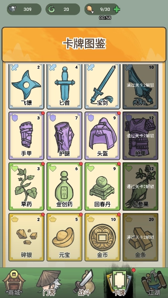 卡牌江湖是一款策略卡牌闯关游戏,整体采用浓郁的国风设计。玩家能够自由收集各类卡牌角色,还能借助资源来增强卡牌的能力。游戏里的战斗模式十分独特,围绕卡牌玩法展开,具有很强的策略性和趣味性。热衷于卡牌对战以及江湖题材的玩家千万不要错过,欢迎在本站体验这款满是策略与挑战的游戏!