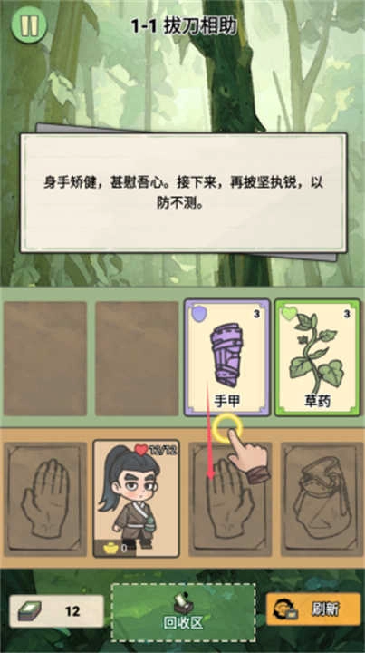 生命值告急了?别担心!把草药牌拖到你的角色身上,它会快速帮你恢复生命值,让你能继续战斗下去,直到取得胜利!