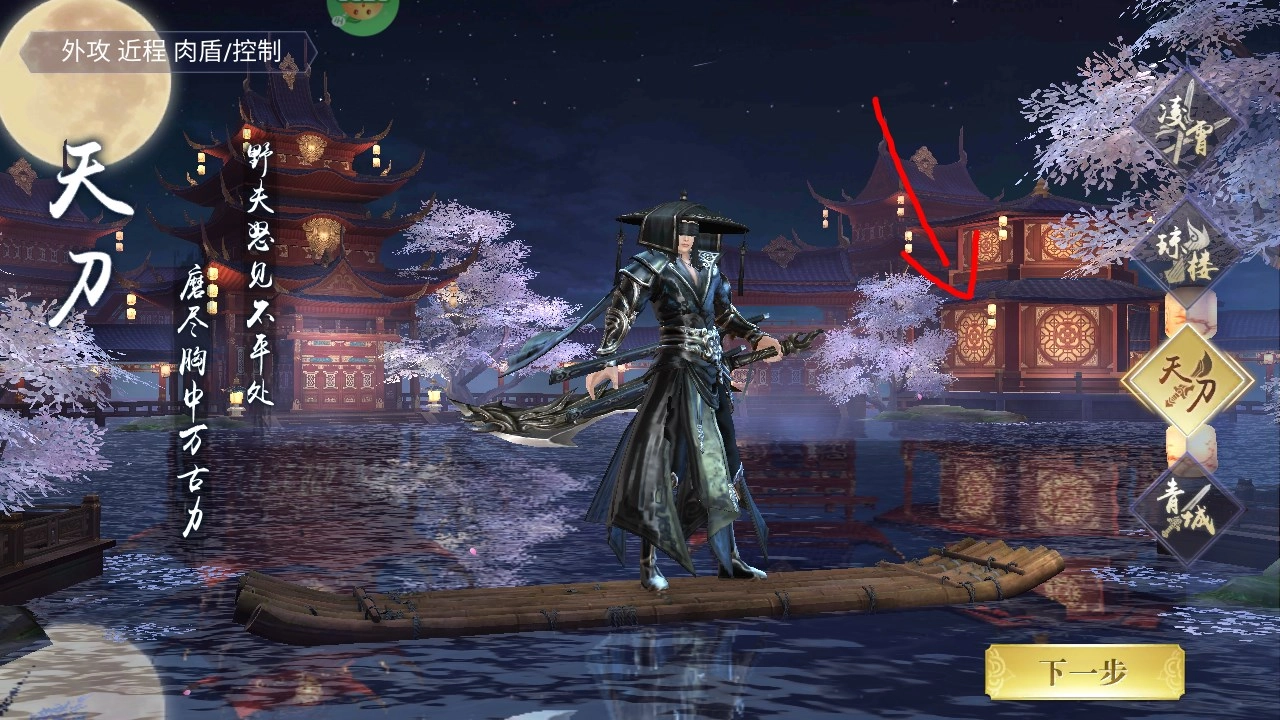 最后一个角色叫青城,是个远程输出型角色,选好角色后点击“下一步”按钮就能继续了。