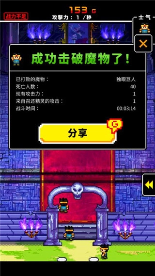 3、各种画面感刺激无比,采用了独特的像素风格,魔王在一堆人眼中变得并不可怕了。