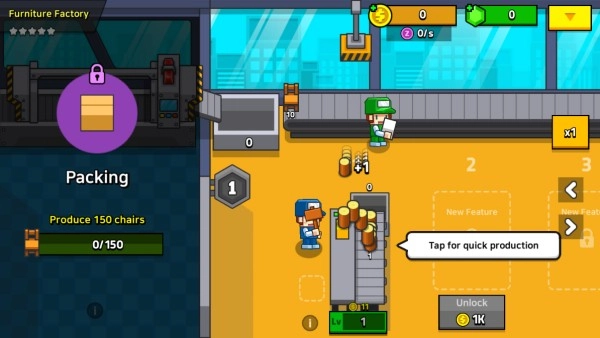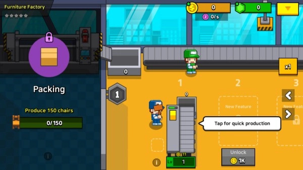 2.点击屏幕能够提升工人加工的速度。