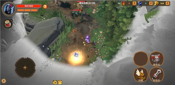 1、进入失乡骑士游戏中,左侧遥感控制行动,右侧进行攻击、闪避等。