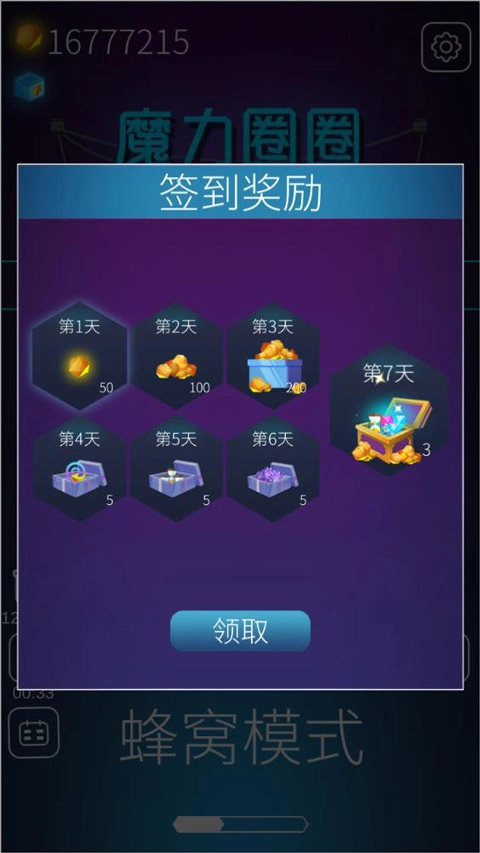 1、打开魔力圈圈消消乐游戏,进入游戏页面,玩家可以领取签到奖励;