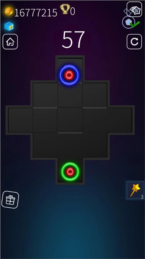 3、选择模式后进入游戏,滑动屏幕上的魔力圈圈,放置到格子里;