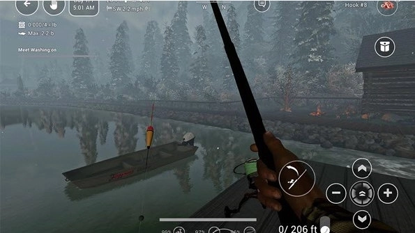 3、左侧的遥控器用于操控方向,我滑动左下角的摇杆,将位置调整到了最适合钓鱼的地方。