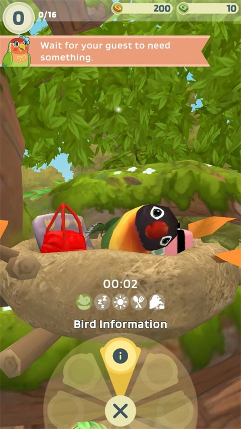 2、根据每只鸟的喜好喂养它们,并成为它们的主人进行各种娱乐活动。