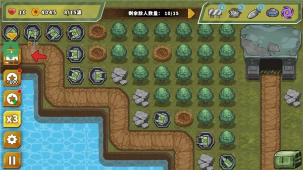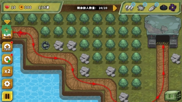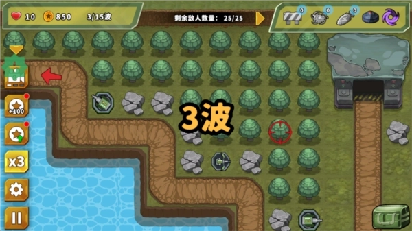 2.敌人会按顺序进入并沿着设定的路径行进,你需要在这条路径上布置防线。