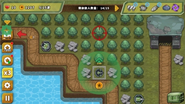 1.找到屏幕中的空位,选择炮塔并放置。