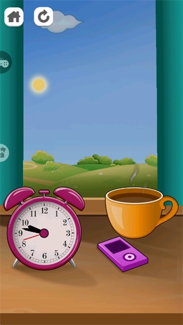 3、部分游戏界面会呈现三个道具,能够调节时钟、播放MP3或者触发喝咖啡的互动效果;