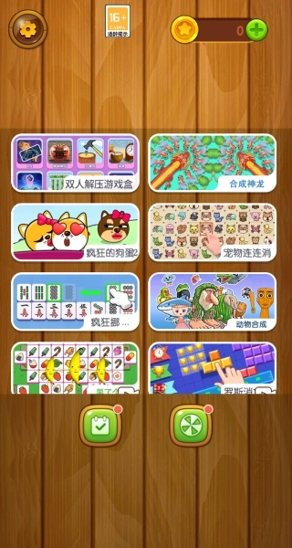 1、进入游戏后,你能看到双人解压游戏盒、合成神龙、疯狂的狗蛋2等不同玩法。