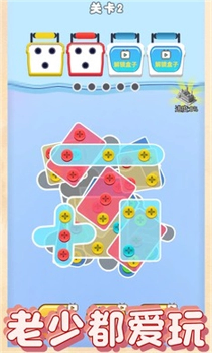 1、在螺丝消除大师安卓版里,玩家能够按照游戏里清除螺丝钉的规则,找出颜色相同的螺丝钉,然后将其移动到对应的工具箱中。