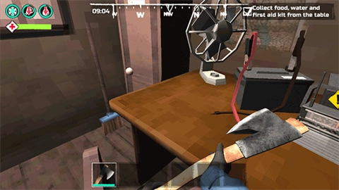 然后一直往前走,可以得到一把斧头,打开背包装上吧