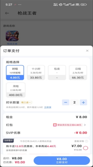 选择你要租的时长点击立即支付