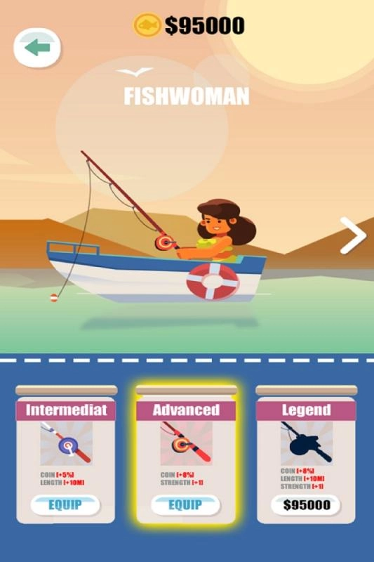 《钓鱼少女》是一款主打钓鱼玩法的轻松益智游戏,采用竖屏操作设计,界面布局简洁明了,整体呈现出卡通清新的风格,为玩家营造出惬意舒适的游戏氛围。搭配轻柔舒缓的背景音乐,玩家仿佛身临其境般置身于真实的水上世界,尽情享受宁静又充满趣味的垂钓时刻。在游戏里,你将化身为一名钓鱼爱好者,驾着小船穿梭于不同的水域进行探索,运用钓竿开展钓鱼活动。通过持续升级渔具、精准调整鱼钩位置,来提升捕获大鱼的概率。此外,将钓到的鱼出售还能获取金币,这些金币可用于进一步强化装备,助力你钓得更深、收获更丰,最终成为名副其实的钓鱼高手。