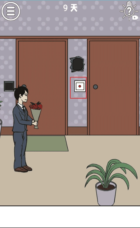 我们先将两个门之间的那个破洞给打开,里面藏着一把刀,拿走这把刀,接着用这把刀把左边门的门铃给扣下来,然后装在右边的门上,再点击门铃,啊哈,就是这样就是这样。