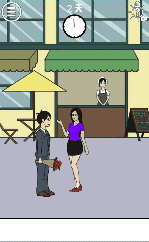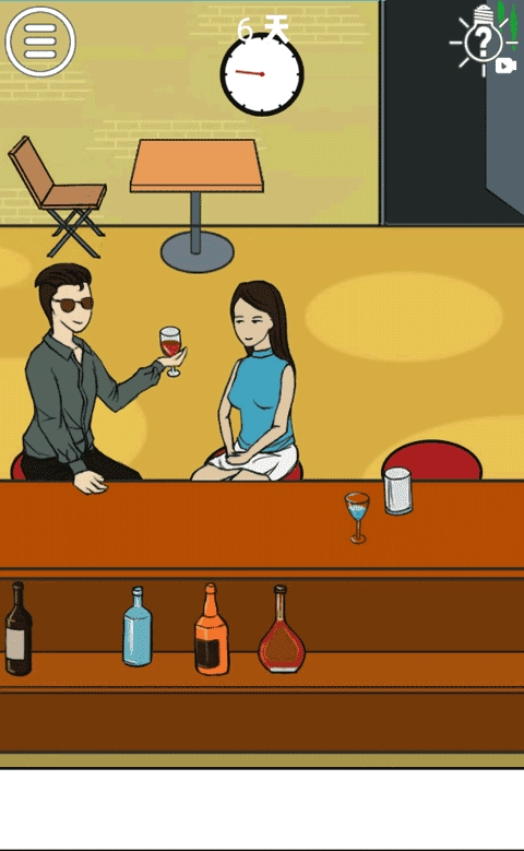 要想让后面的那个男子成功上位我们就必须得先调虎离山,让情侣中的男子离开。首先,点击白衣男子的酒杯给他倒酒,一直倒,一直倒,一直倒,重要的事说三遍。接着白衣男子就会hold不住,起身去厕所,这时候我们的机会就来了,点击将后面的男子放在这个女子的座位旁边,搞定!