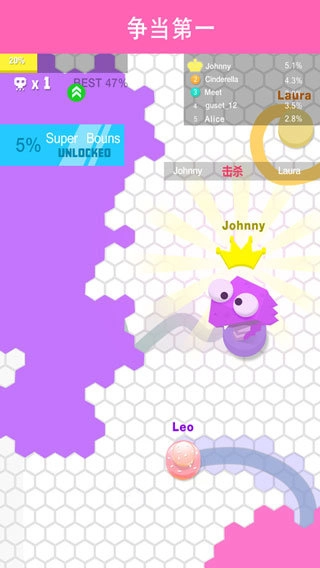 圈圈大作战正版是一款画面精美的游戏作品,首先游戏中玩家所要做的便就是要守护自己的领土不被侵犯,而且玩家在游戏中所要面对的敌人非常的狡猾奸诈,玩家需要一边警惕一部守护,并且还需要打起十二分的精神来与敌人斗智斗勇,确实是一部非常有趣且极具可玩性的作品。首先画面上看,作品拥有非常精致简洁的游戏画面,而且内容上玩家将能为你带来丰富的游戏玩法,制作水平非常高,在类型游戏中也属于佼佼者,而且玩家还可以在游戏中为你带来丰富的游戏玩法和体验。圈圈大作战正版的玩法也是非常的好玩,在占领领土的情况下,也要保住自己的路线,这样防止自己被敌人占领,小心,如果你的领土小的话,尽快发展自己的领土,击杀敌人会清空敌人的领土,你要快速占领这个领地,这里还有道具模式哦!这里的道具非常丰富,只需要灵活的运用道具就可以成功的击败敌人。