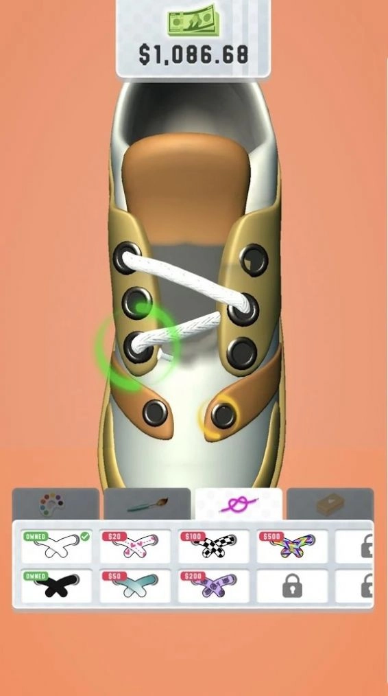 -把他们绑起来!选择数十种鞋带,然后根据屏幕上的图案绑上鞋带,以获取更多现金!