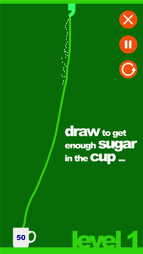 进入关卡玩家需要画线将糖引导在杯子里面