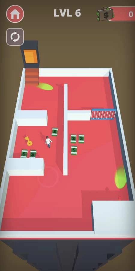 在游戏里,玩家需要潜入各个不同的房间,一边躲避巡逻的人员与摄像头,一边收集房间里的现金和珠宝。